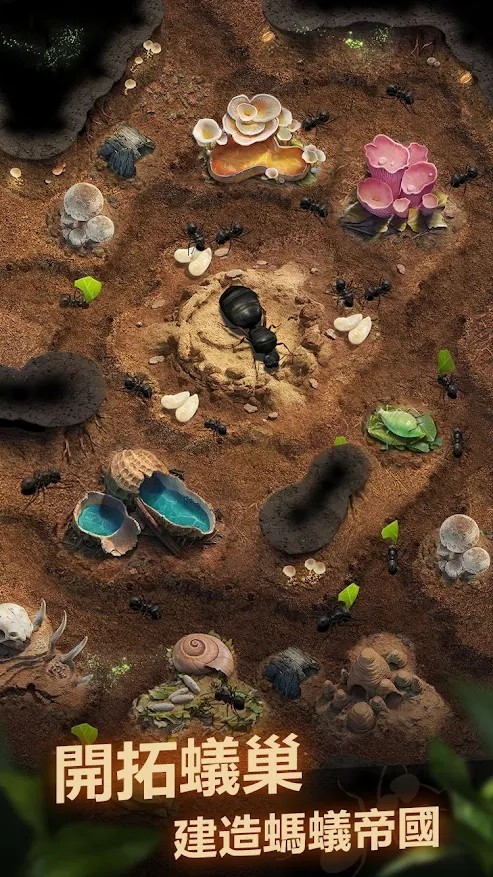 地下巢穴被设计成可自由规划的城堡,包含孵化地、采集区、存储仓库等上百种建筑资源。蚁群拥有严谨的分工体系:工蚁负责资源采集与巢穴修建;兵蚁分为近卫蚁、射手蚁等类型组成防御军团;特化蚁则作为变异领袖,通过孵化异化卵获得,分为发展型与战斗型两类。当蚁后等级达到7级后,还可解锁种植、掠夺、畜牧三种习性选择,每种习性对应独特的发展路线与技能加成。野外大地图中存在蜥蜴、螳螂等上百种天敌,需要根据蚁种克制关系搭配战斗阵容,形成千变万化的对策略。