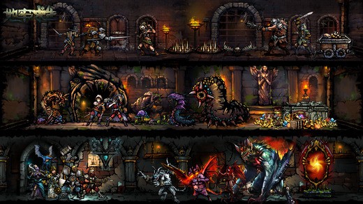 游戏采用横版回合制战斗模式,结合前后排站位系统,考验战术布局与临场应变能力。探索过程中可能面临食物短缺、陷阱触发、怪物突变等意外状况,例如看似弱小的虫群具备无限分裂能力,或头目随机获得罕见特质颠覆既定战术。冒险旅途包含三种难度阶梯——普通、噩梦与炼狱,层数推进,敌人强度和机制复杂度显著提升。英雄们不仅会染上恶疾或产生精神问题,严重时甚至会离队逃亡,需通过医院治疗或圣水复活维持队伍稳定性。