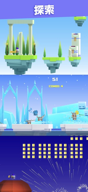 核心玩法围绕控制方块造型的英雄角色持续向前冲刺展开。在行进过程中需要灵活应对各类障碍物,包括飞跃悬崖、躲避旋转风车等机关设计。途中可拾取宝箱获取武器道具,包括长剑、矛、标枪、飞刀、火箭、斧头、炸药等多种装备可供选择使用。关卡推进,角色能够通过收集金币解锁更多英雄皮肤与盔甲装备,如骑士铠甲、红龙盔甲等装饰性物品。同时内置英雄之塔建造系统,通过完成特定任务获取资源,逐层解锁强力魔法技能,增强角色战斗能力。游戏世界包含多个主题场景,从巨人国到冰雪世界,每个地图都拥有独特的关卡设计和挑战要求。支持横竖屏自由切换功能,让用户能在不同场景下灵活体验游戏内容。
