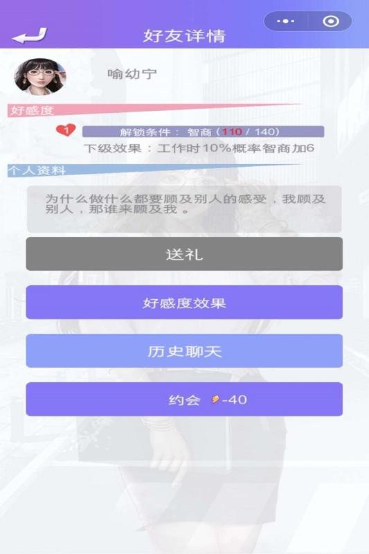 虚拟环境采用清新明亮的视觉风格,场景设计兼顾美观与功能性。职业发展路径具有高度自由度,参与者可以根据自身兴趣选择不同发展方向。子女培养系统要求关注后代的教育与成长,其属性发展将直接影响虚拟家族的延续与传承。双平台兼容设计使得参与过程不受设备限制,无论通过移动终端还是电脑设备都能获得完整体验。随机事件系统增加了不可预测性,各种突发状况需要及时应对与决策。多维度的社交网络设计允许参与者和虚拟角色建立商业合作或情感联系,形成复杂的人际关系网络。