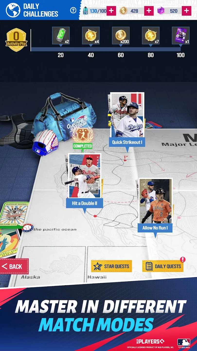 最大的特色在于拥有MLB官方授权,收录了全联盟超过2000名职业球员,每个人的真实能力都会直接影响到比赛表现。球员数据会定期更新,确保贴近真实赛场表现。比赛节奏设计得恰到好处,单局比赛快速刺激,既保留了棒球战略的临场体验,又不会占用太多碎片时间。最新加入的配球策略推荐功能很贴心,投球时会根据场上局势自动推荐配球策略,轻松掌握投球技巧。此外还新增了限时球员试炼玩法,可以提前体验新球员的强度,通过挑战关卡还能获得丰厚奖励。