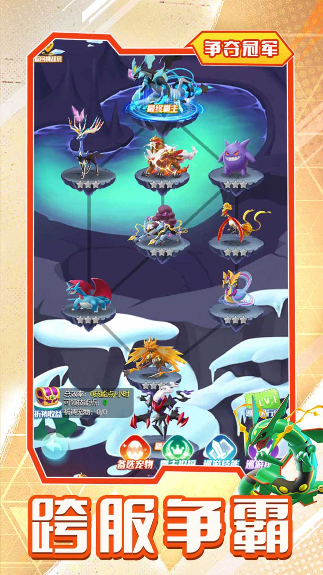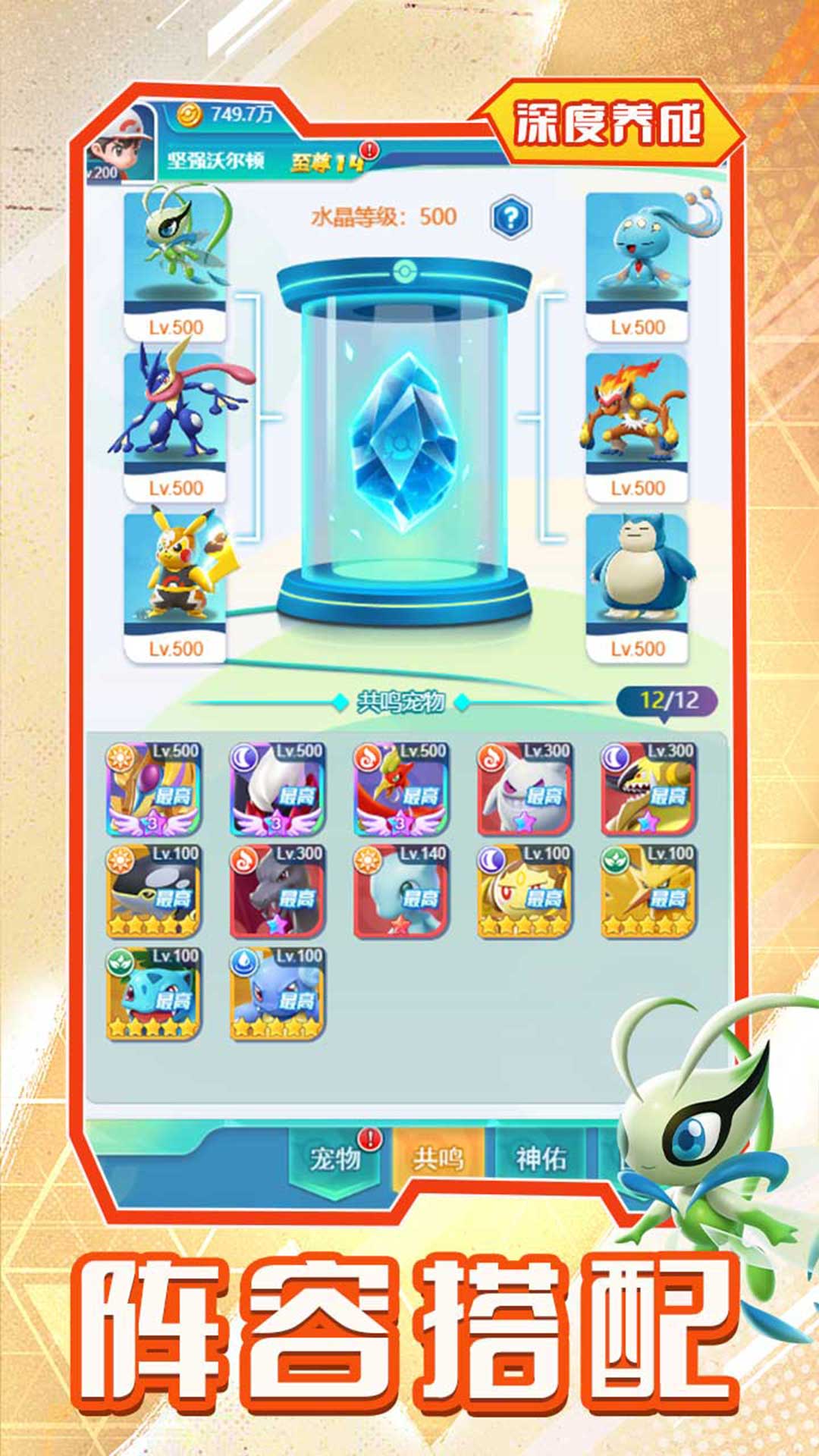 游戏在视觉与操作性层面表现突出,采用全3D高清建模技术,支持无死角视角切换与观察,战斗特效流畅炫丽。阵容搭配方面,游戏提供多种流派选择,例如灼烧流阵容可通过胡帕、烈焰猴等精灵施加持续伤害效果,而精准点杀流则依赖固拉多、智皮神等高爆发角色实现快速制胜。例如超梦作为核心输出精灵,具备无视防御与高额爆发的特性;而水君等防护型角色则能提供稳定护盾支持。这些设计不仅提升了视觉享受,更通过策略维度强化了游戏的核心乐趣。