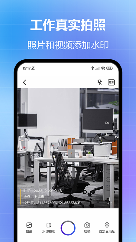 任意修改水印相机是一款专注于为照片与视频提供专业级水印添加与编辑服务的移动应用。它通过强大的自定义功能,满足用户在工作记录、生活分享、品牌宣传等多种场景下对图像信息标注的精准需求,尤其擅长时间、地点等关键信息的灵活修改与呈现。