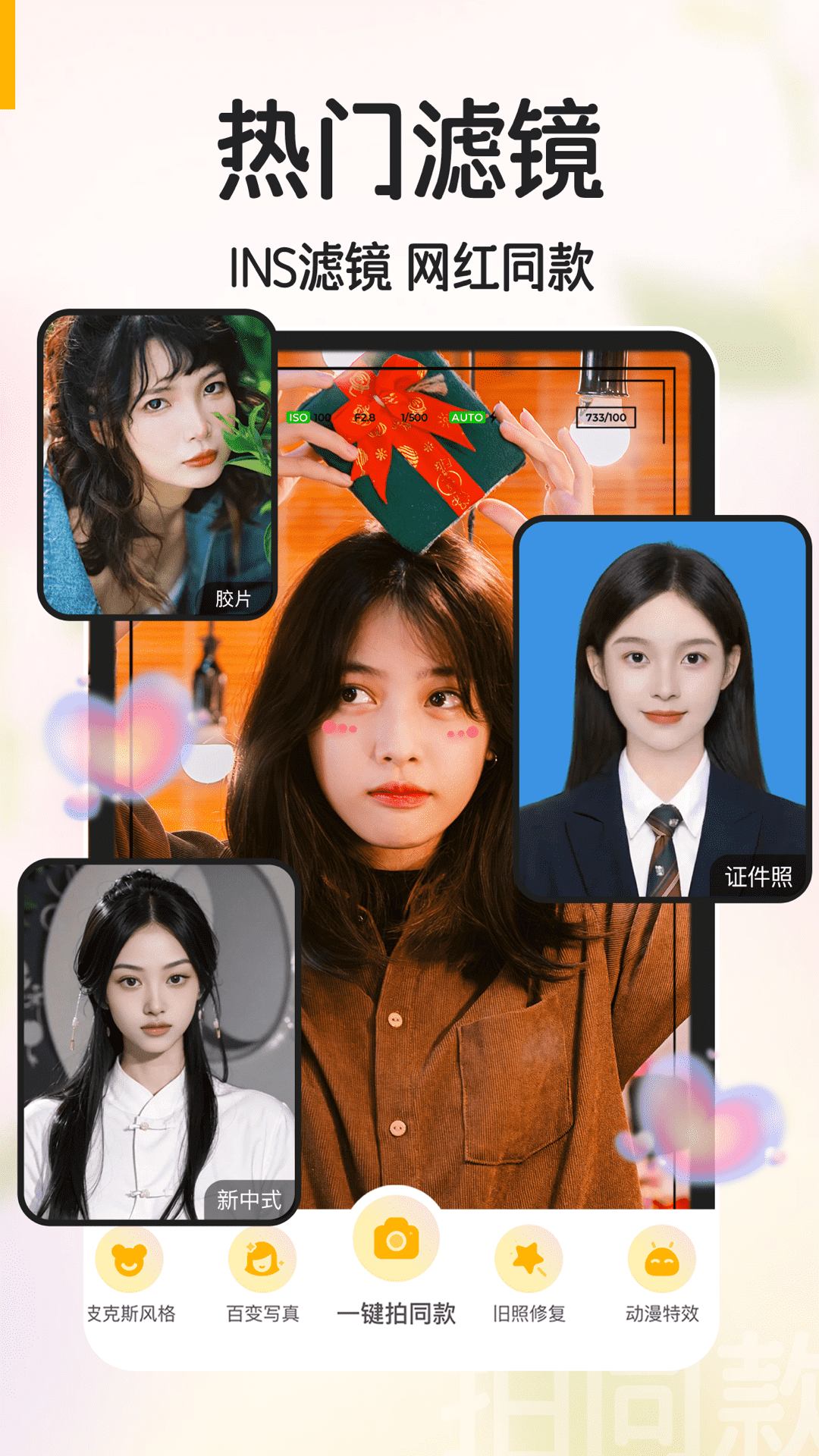 美绘相机的亮点在于其多功能拍摄模式和智能辅助系统的完美结合。百变写真人像模式能自动识别并优化面部特征,完美呈现五官细节与皮肤质感。迪士尼特效可将照片变成童话公主风,皮克斯风格则赋予画面生动动画质感。老照片修复技术能智能修复破损部分,还原色彩与清晰度,让珍贵回忆重焕新生。夜间模式通过算法降噪补光,在暗光环境下也能拍摄出清晰照片。朋友圈拼图模板支持多图创意拼接,适合分享旅行或聚会回忆。