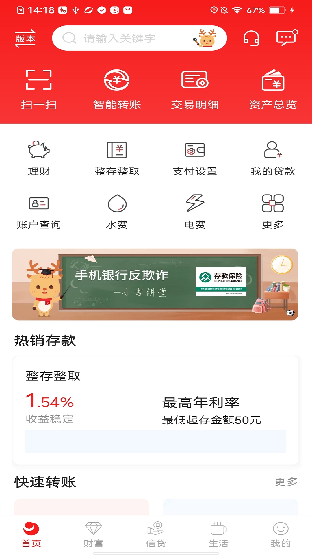 江都吉银app的核心功能覆盖了全面的金融管理需求。用户可通过应用进行账户查询、账户管理、行内转账、跨行转账以及本人账户互转,实现无缝资金流动。它还支持活期转定期、定期转活期、通知存款开立与支取等操作,简化了传统银行服务的繁琐流程。应用还内置账单管理系统,允许用户录入水电煤、信用卡、房贷等账单信息,系统自动在还款日前提醒,避免滞纳金问题。实时金融资讯更新功能为用户提供市场动态和投资建议,辅助理财决策。,